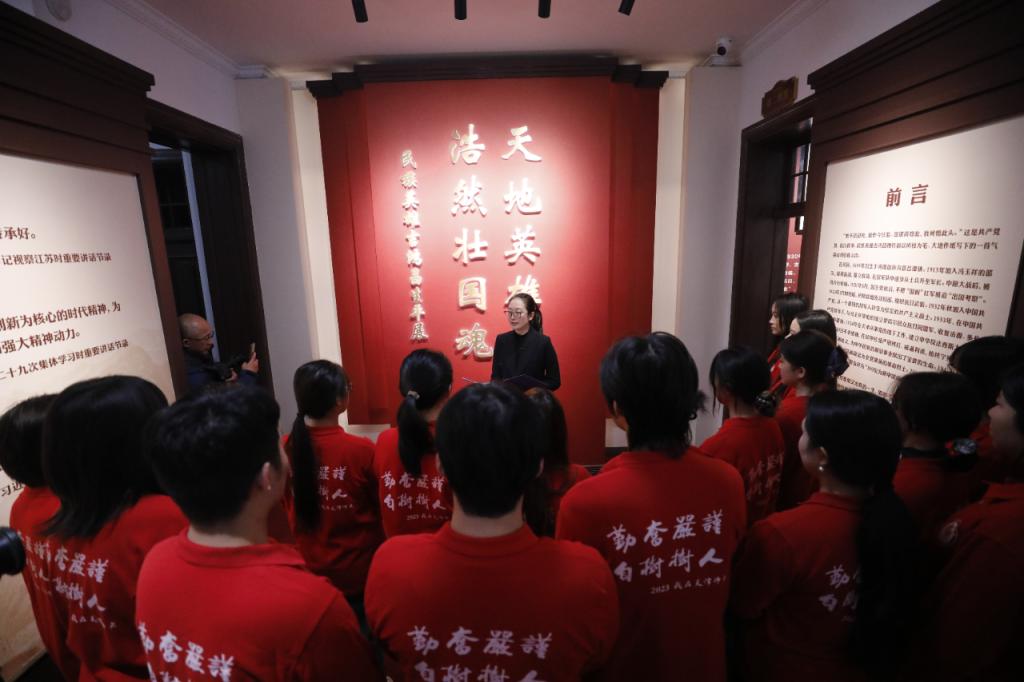 一件件饱含沧桑的实物,一幅幅定格烽火岁月的图片,让师生领略到抗日英雄、爱国将领吉鸿昌将军“天地英雄气、浩然壮国魂”的崇高品格。在沉浸式表演中,师生更加直观地感受到了吉鸿昌将军为民族独立、人民解放而不懈奋斗的壮志豪情和“恨不抗日死,留作今日羞”的伟大气节。